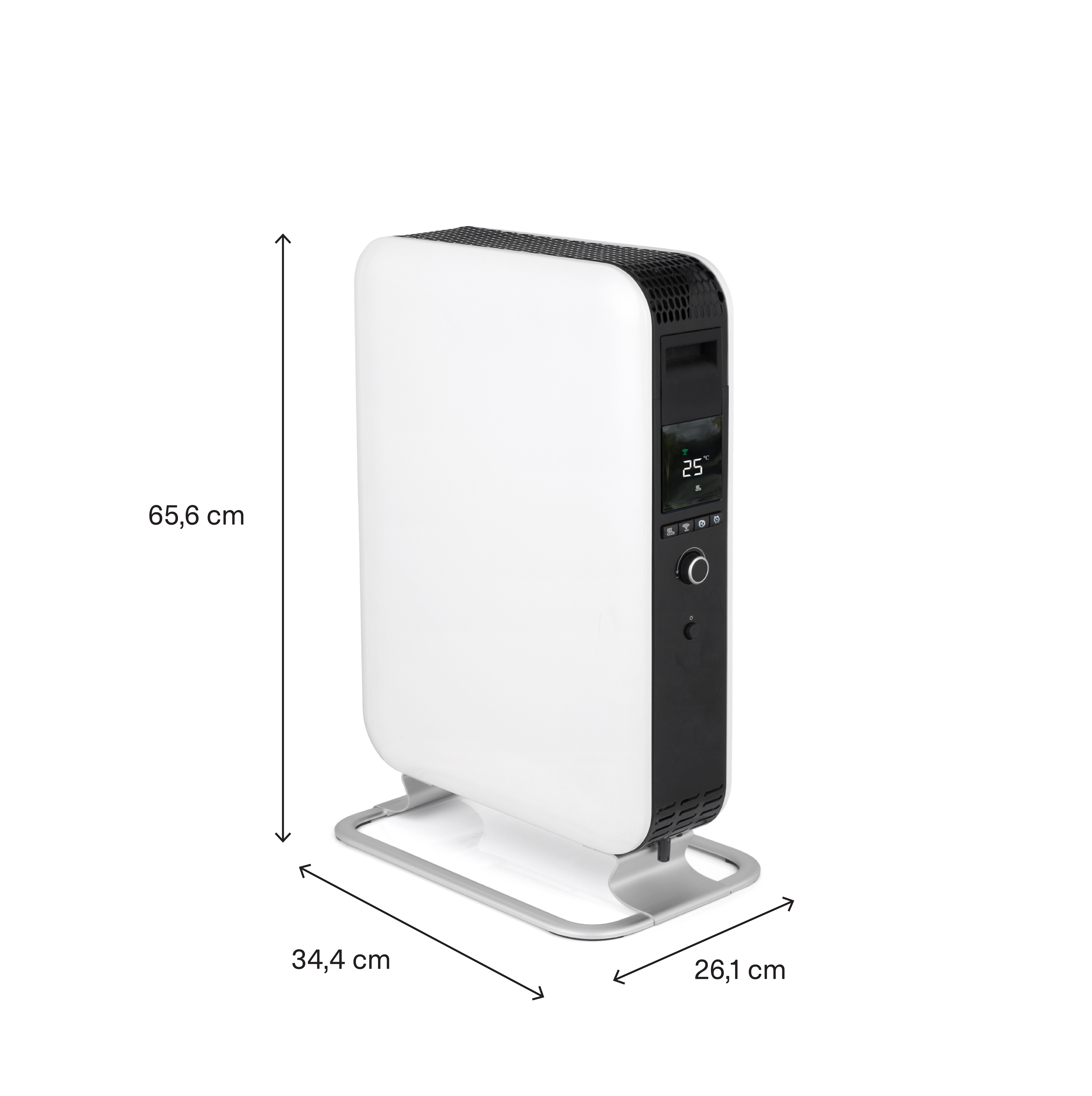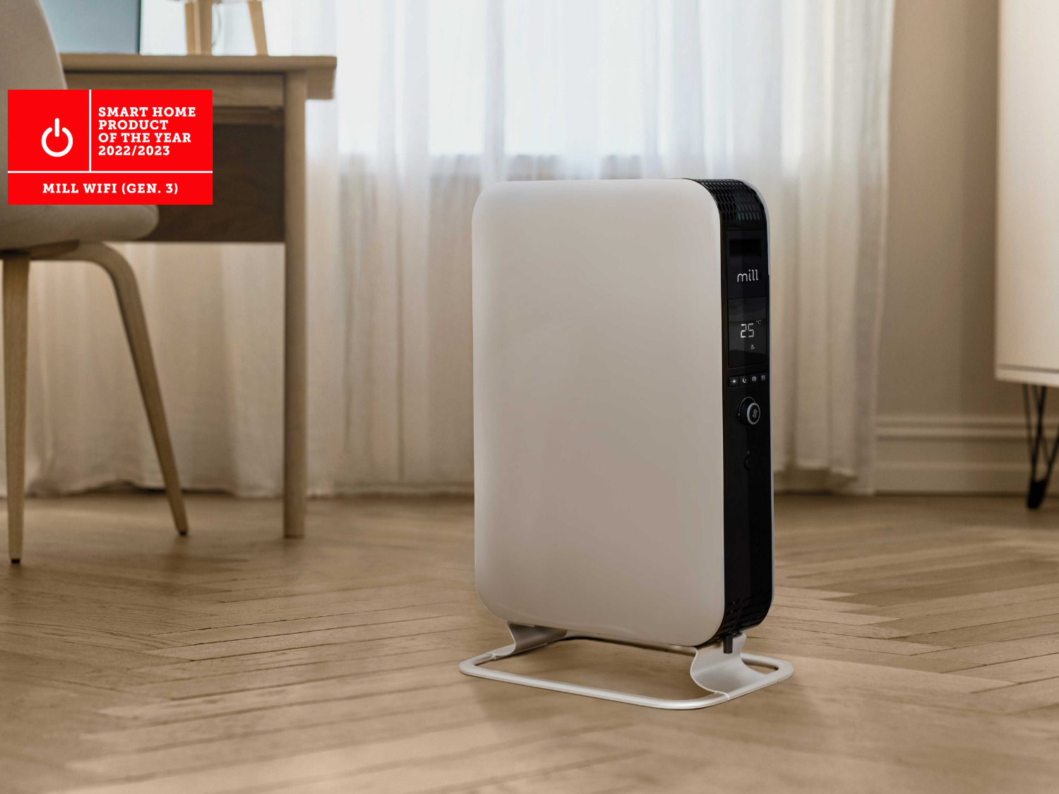 Thanks to its innovative closed design, the heater distributes heat much faster than traditional oil-filled radiators. This allows it to warm up a room 29% quicker, as the closed shape accelerates the rise of hot air, ensuring efficient heat distribution. We call this Mill Heat Boost Technology.